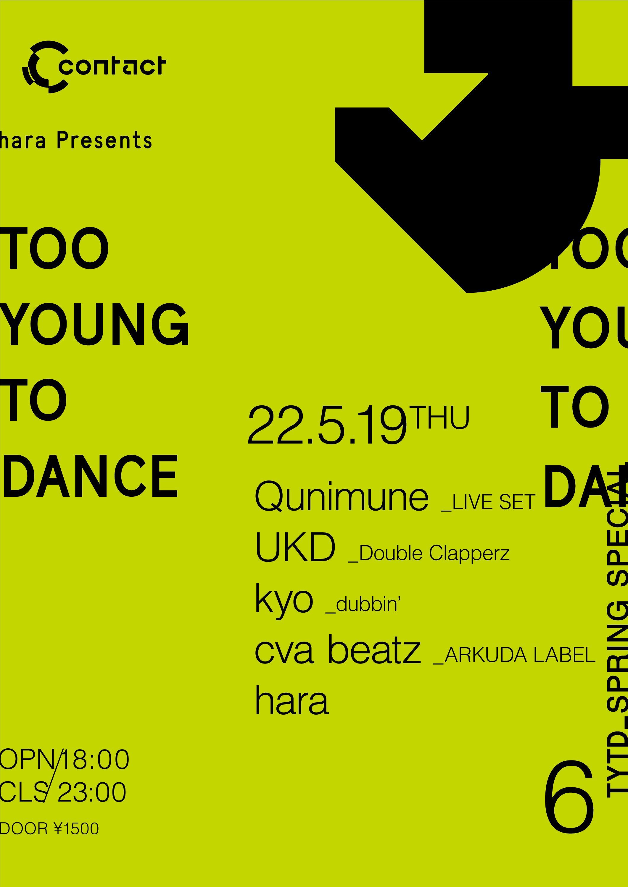 Pioneer DJのオフィシャルプレイヤーharaによるUKガラージ/テクノ・パーティTYTDが、9月のContactの閉店に向けてラストスパートを切る。haraと活動を交差させるピックアップアーティストが、弾けるキックとうねるベースで5時間を隙間なく埋める。今回は、Daichi YamamotoやRAU DEFのプロデュースを手がけるQunimuneや、ラッパーralphのメインプロデューサーも務めるUKDなど、エレクトロニカ然としたディティールの完成度と、フロアをバウンスさせる精巧なサウンドメイク能力を携えた、5アーティストが集まった。