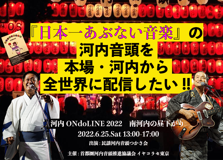 来たる6月25日(土)つかさ会と我々イヤコラセ東京がタッグを組み、本場・河内から待ちに待った河内音頭を、皆様にライブ配信でお届けします !!