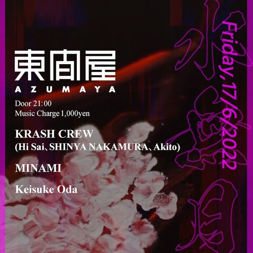 2022.06 17 JUN Azumaya -Friday- HOUSE 0 Shares Facebook Twitter google Line DATE: 2022-06-17 FRI OPEN: 21:00 VENUE: PRICE: Music Charge ¥1,000 LINE UP: KRASH CREW (Hi Sai、SHINYA NAKAMURA、Akito) MINAMI Keisuke Oda