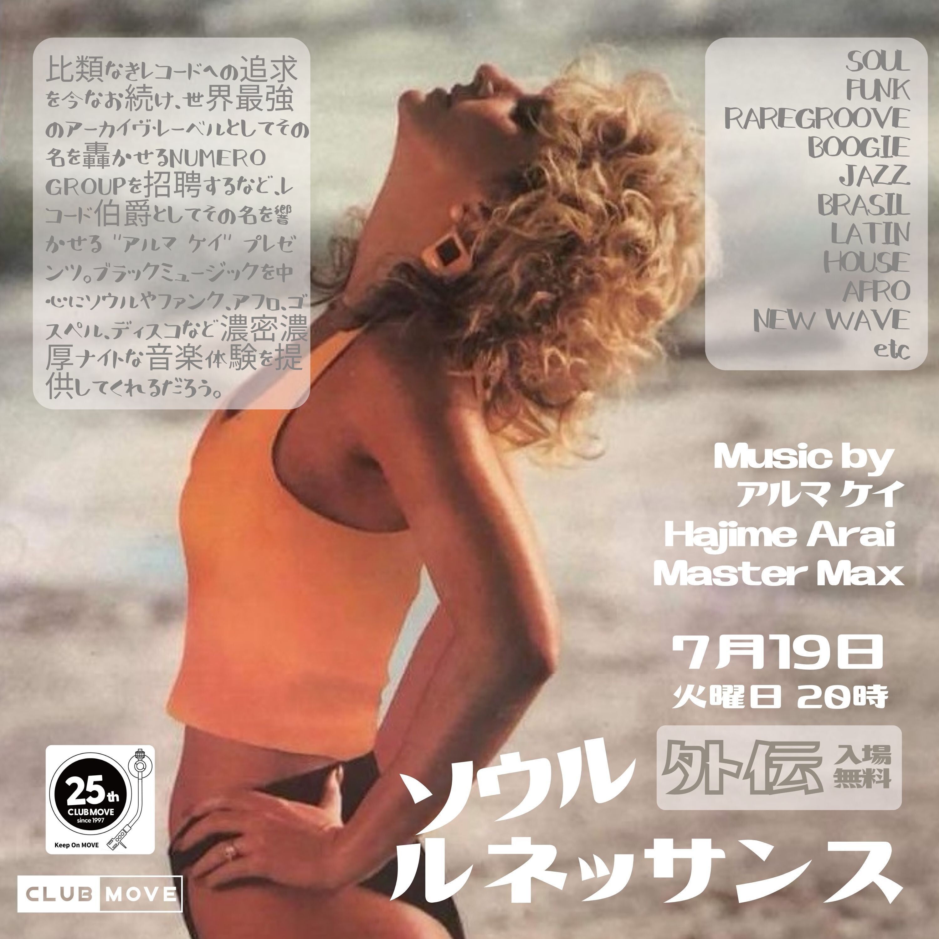 比類なきレコードへの追求を今なお続け、世界最強のアーカイヴ・レーベルとしてその名を轟かせるNUMERO GROUPを招聘するなど、レコード伯爵としてその名を響かせる "アルマ ケイ" プレゼンツ。ブラックミュージックを中心にソウルやファンク、アフロ、ゴスペル、ディスコなど濃密濃厚ナイトな音楽体験を提供してくれるだろう。