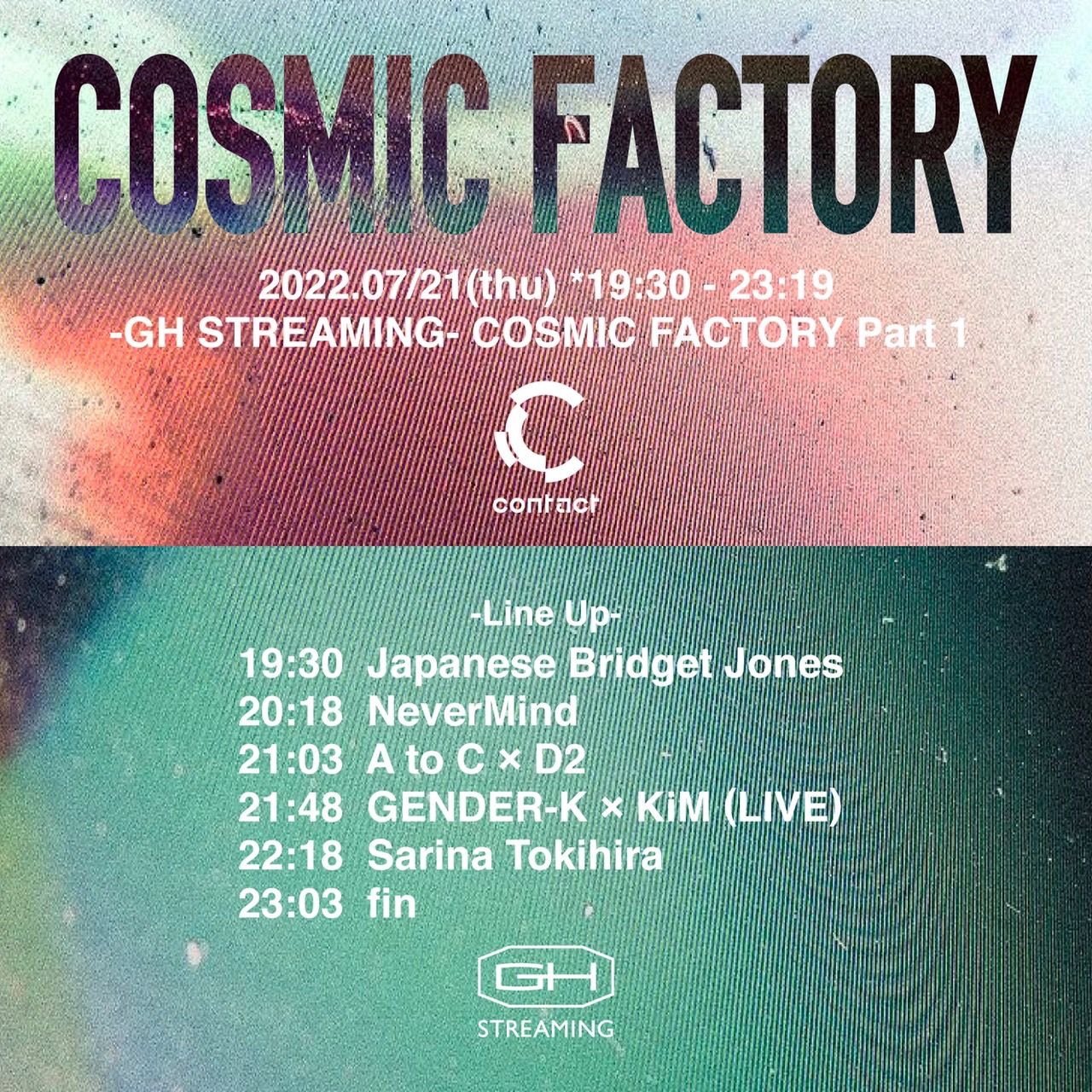 今回の#GH STREAMING は2022/5/29(日)にContactで開催された#COSMIC FACTORYのContactフロアーでの収録をSPECIAL2DAYSとしてお届けする。
