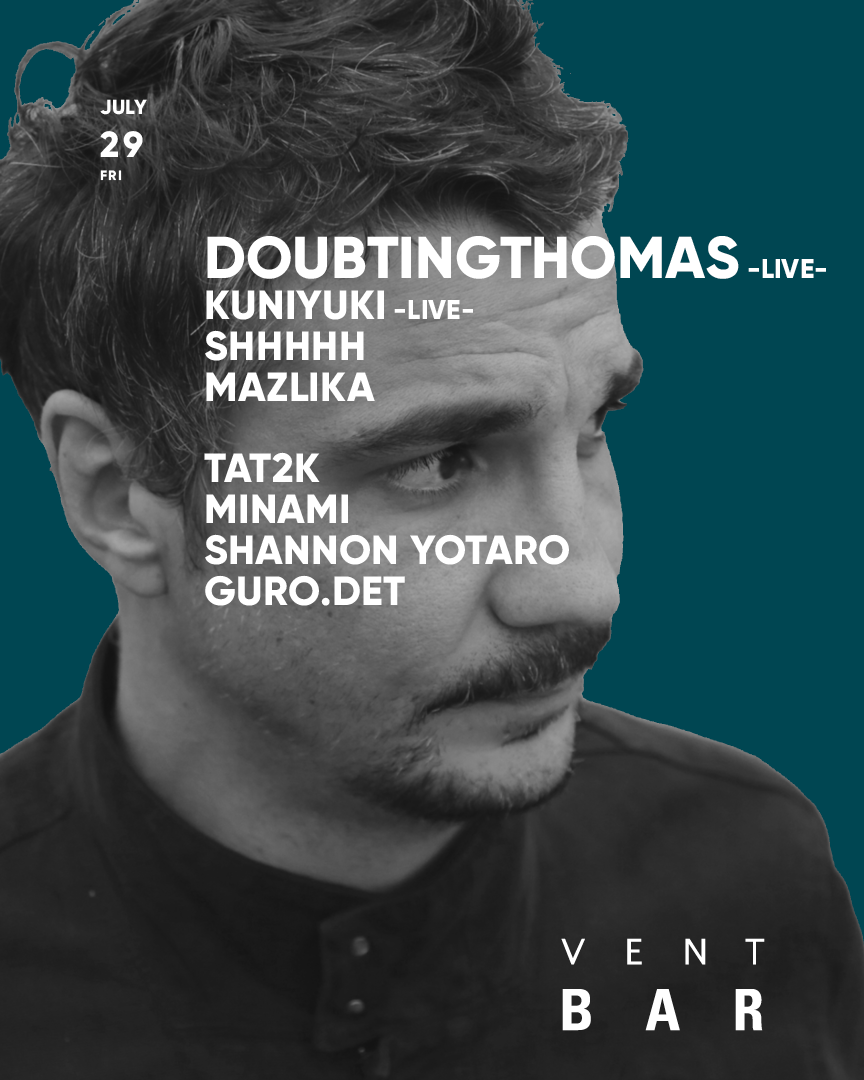 ミニマルハウス・シーンで最も注目を集めるEASTENDERZを筆頭にORGANIC MUSICやDokutokuなどのレーベルからのリリース作品が好評なDoubtingThomasが7月29日のVENT BARに登場!