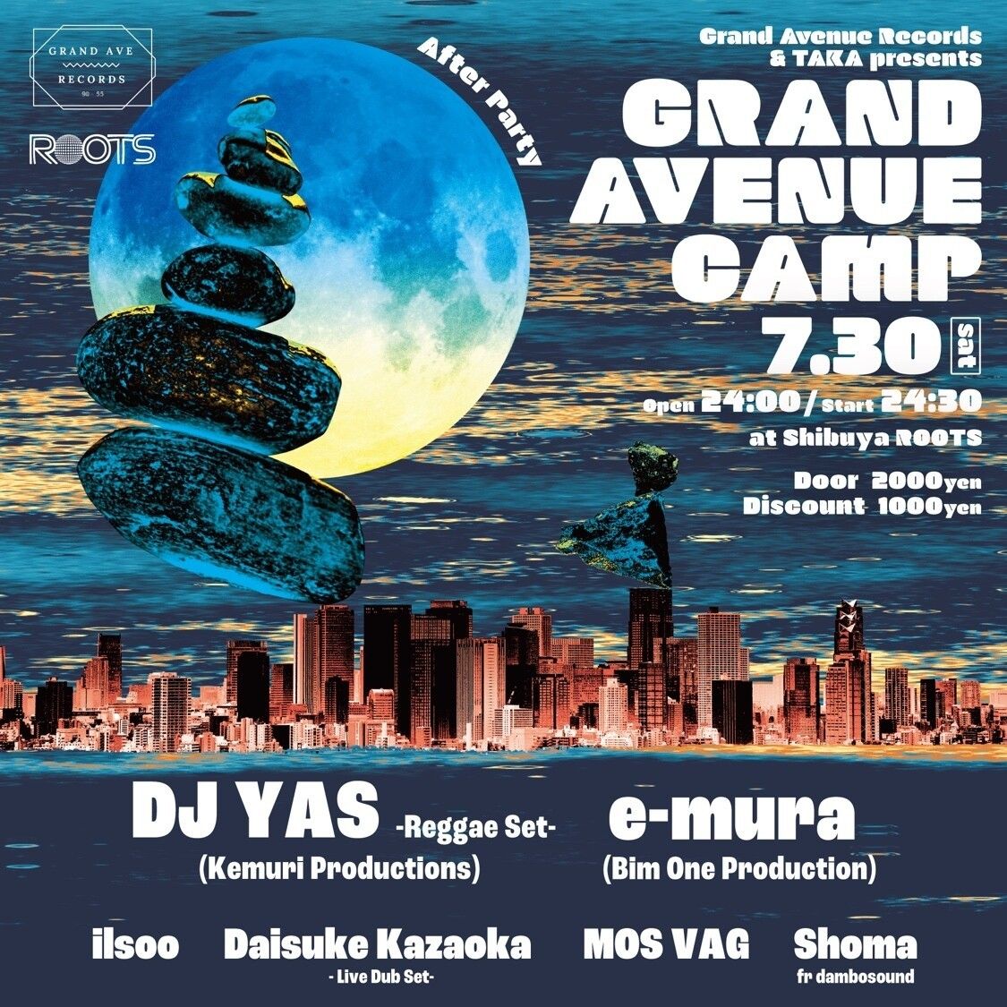 青山蜂で行われる【GRAND AVENUE CAMP 2022】のアフターパーティーが、場所を、渋谷Rootsに移動し開催決定!