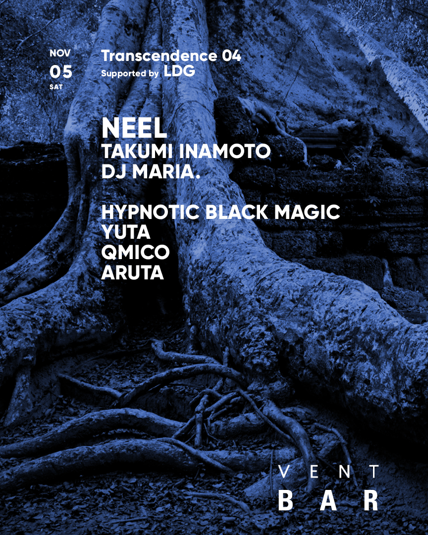 ROOM1には、本パーティー Transcendence を主宰する2人がラインナップ。20歳頃よりゴアトランスシーンに魅せられあらゆるレイブシーンを渡り歩き、現在ではサイケデリック、プログレッシブトランスをバックボーンとし、サイケデリアのあらゆる側面を網羅するセレクターとして活動し、Kia主宰のレーベル Animaliaやオスロの Ute、ロンドンの SUB:SYSTEMなど各国のポッドキャストへミックス提供も行うTakumi Inamotoと、サイケデリックテクノを中心に、アシッド、トランスを織り混ぜたプレイが魅力で、EP ’’Acid sunrise’’や’’Communicating with the Universe’’のリリース、ポッドキャストへのミックス提供など精力的に活動しDJ MARIA.がプレイする。