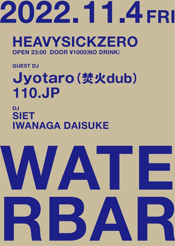 2022.11 04 NOV water bar HOUSE CROSSOVER 0 Shares Facebook Twitter google Line DATE: 2022-11-04 FRI OPEN: 23:00 VENUE: PRICE: [DOOR]1000YEN LINE UP: ■GUEST DJ Jyotaro (焚火dub) 110.JP ■Resident DJ SIET IWANAGA DAISUKE http://www.heavysick.co.jp/zero/