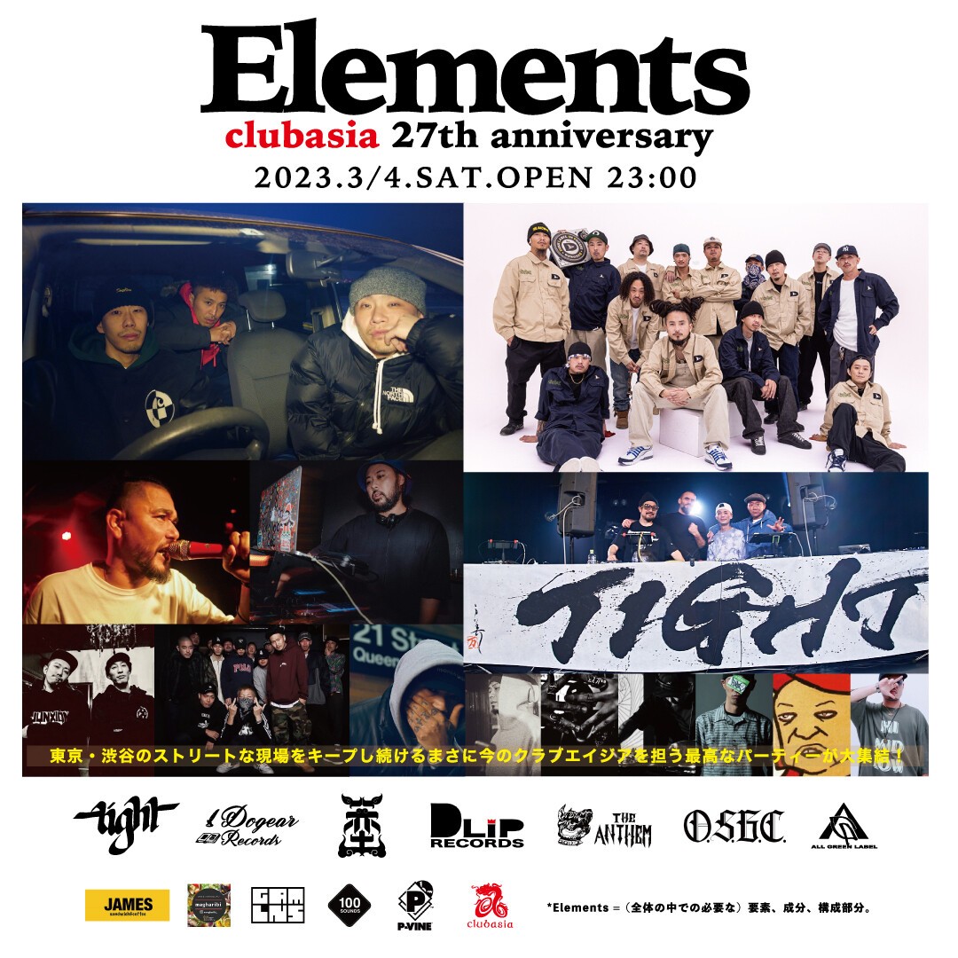 clubasiaの27周年を迎える3月最初の土曜には、東京・渋谷のストリートな現場をキープし続け、まさに今の"クラブエイジア"を担う成分・要素的なパーティーが大集結しました。