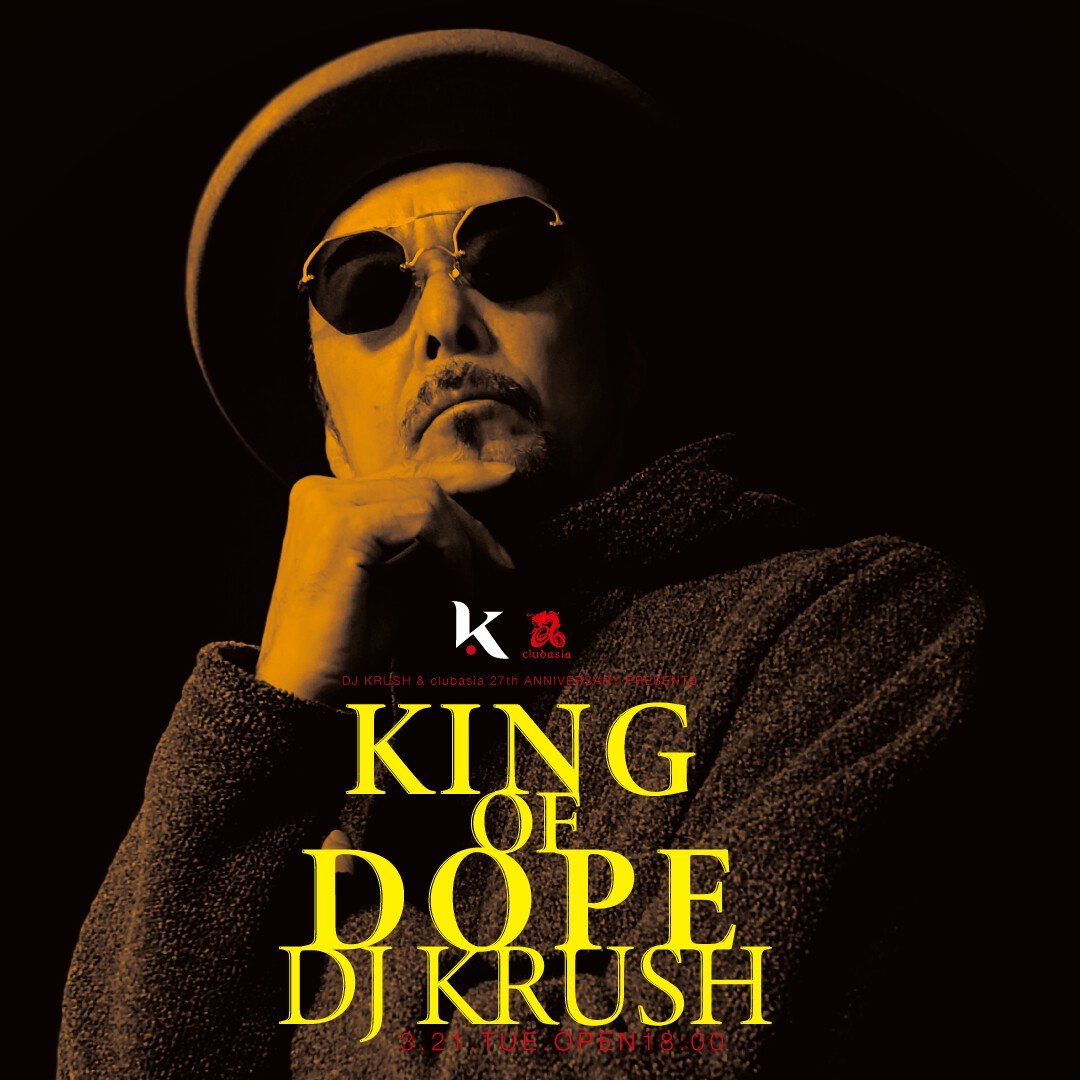 2023年・新たなスタートをきった DJ KRUSH によるワンマンDJライブ、"KING OF DOPE・DJ KRUSH" が今年もclubasiaの27周年記念公演として開催決定!