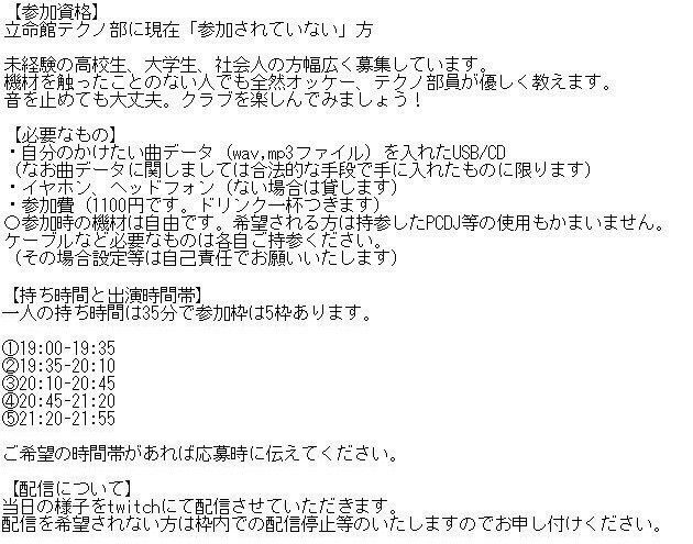 参加資格・・・「現在立テクに所属していない方」なので、社会人だけでなく立テクが気になっている高校生の方も大歓迎です(高校生以下の方は22時までにご退場願います)