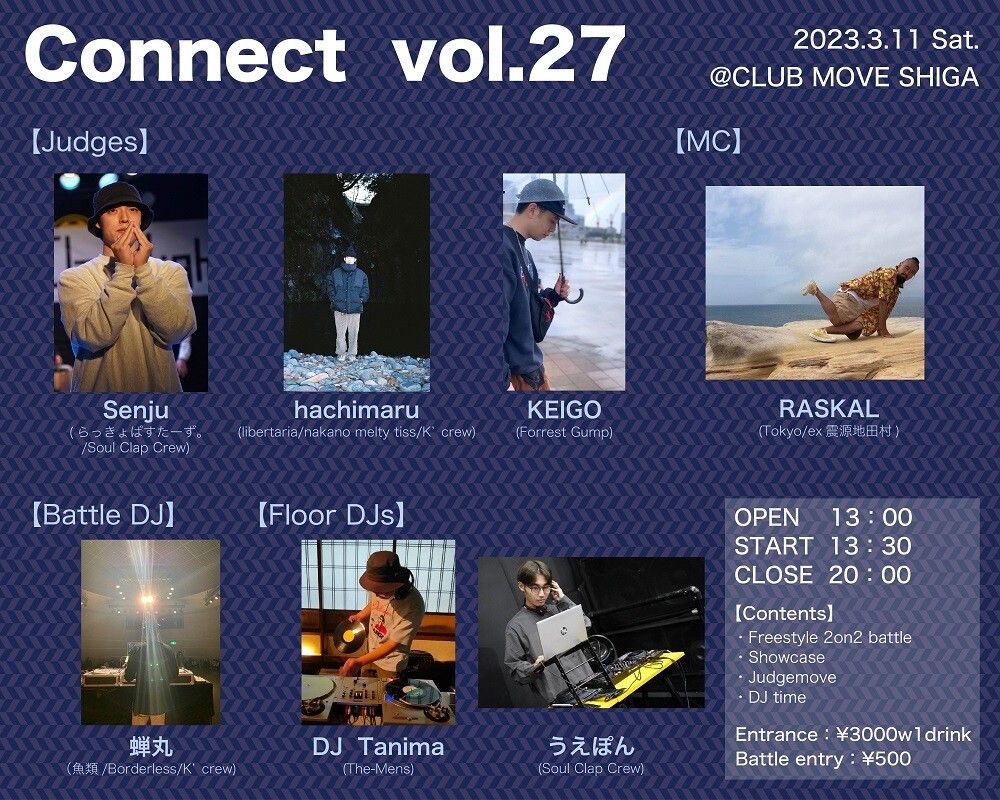参加団体は K' crew (滋賀県立大学)、震源地田村 (長浜バイオ大学)、Soul Clap Crew (滋賀大学)、Knock Up Stream (聖泉大学)。湖北をレペゼンとする共通の思いを胸に、湖北大学生ダンスイベントを合同開催!