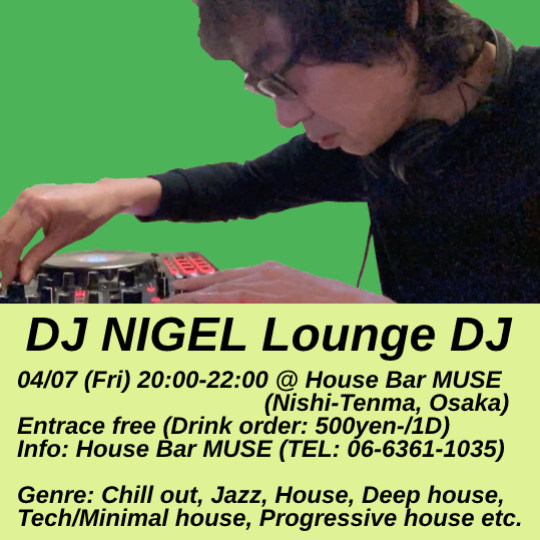 現在は大阪を拠点に、西天満House Bar Muse、東心斎橋CONTORTなどでDJを行なっている。
