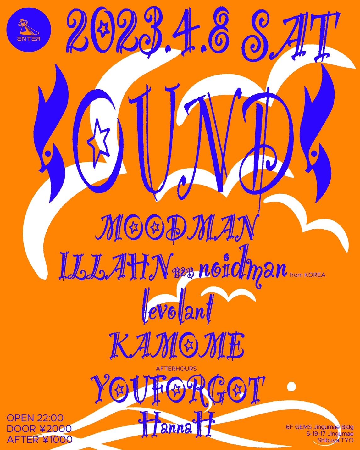 韓国よりILLAHNとnoidmanが来日。80年代からのキャリアがある数多のレジデントパーティーを開催してきたMOODMANを始め、levolant、KAMOMEと若手のDJも出演する。アフターアワーズにはYOUFORGOTとHannaHが登場。