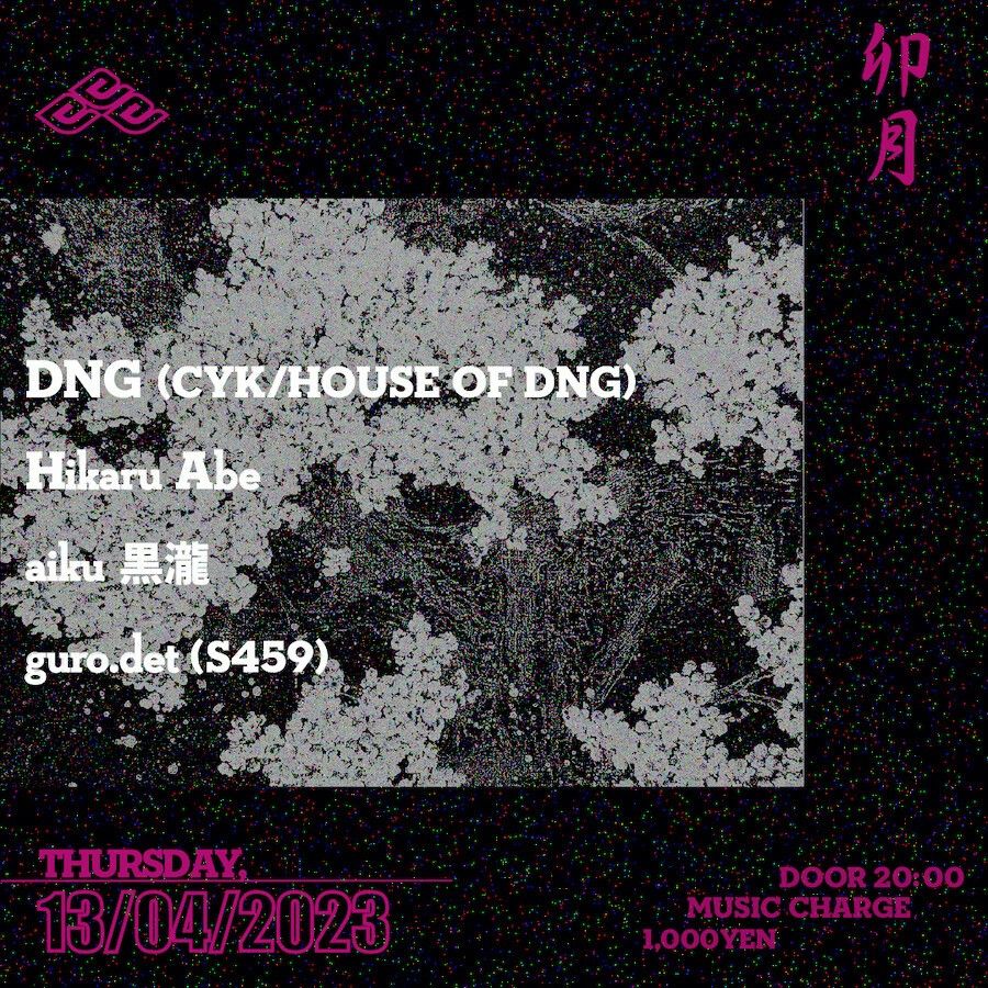 2023.04 13 APR Azumaya -Thursday- HOUSE 0 Shares Facebook Twitter google Line DATE: 2023-04-13 THU OPEN: 20:00 VENUE: PRICE: Music Charge 1,000yen LINE UP: DNG (CYK/HOUSE OF DNG) Hikaru Abe aiku 黒瀧 guro.det (S459)