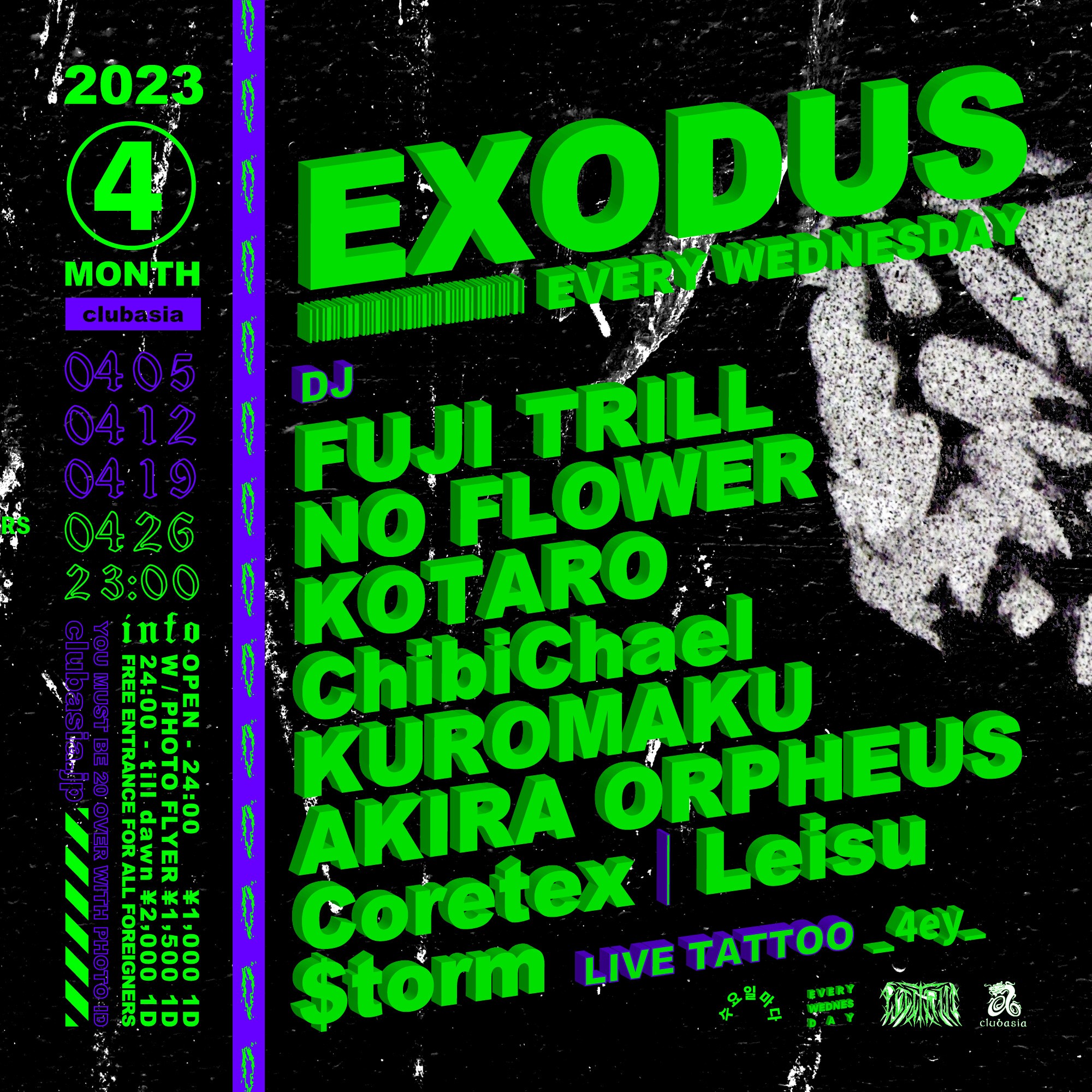 FUJI TRILLをはじめ多方面に活躍するDJ,BeatMakerが毎週水曜渋谷の夜をにぎわす通称"エクソ "。LIVE TATTOO、PAINTも隔週でcheck。外国からのお客様は入場フリー!!是非お越しください!!