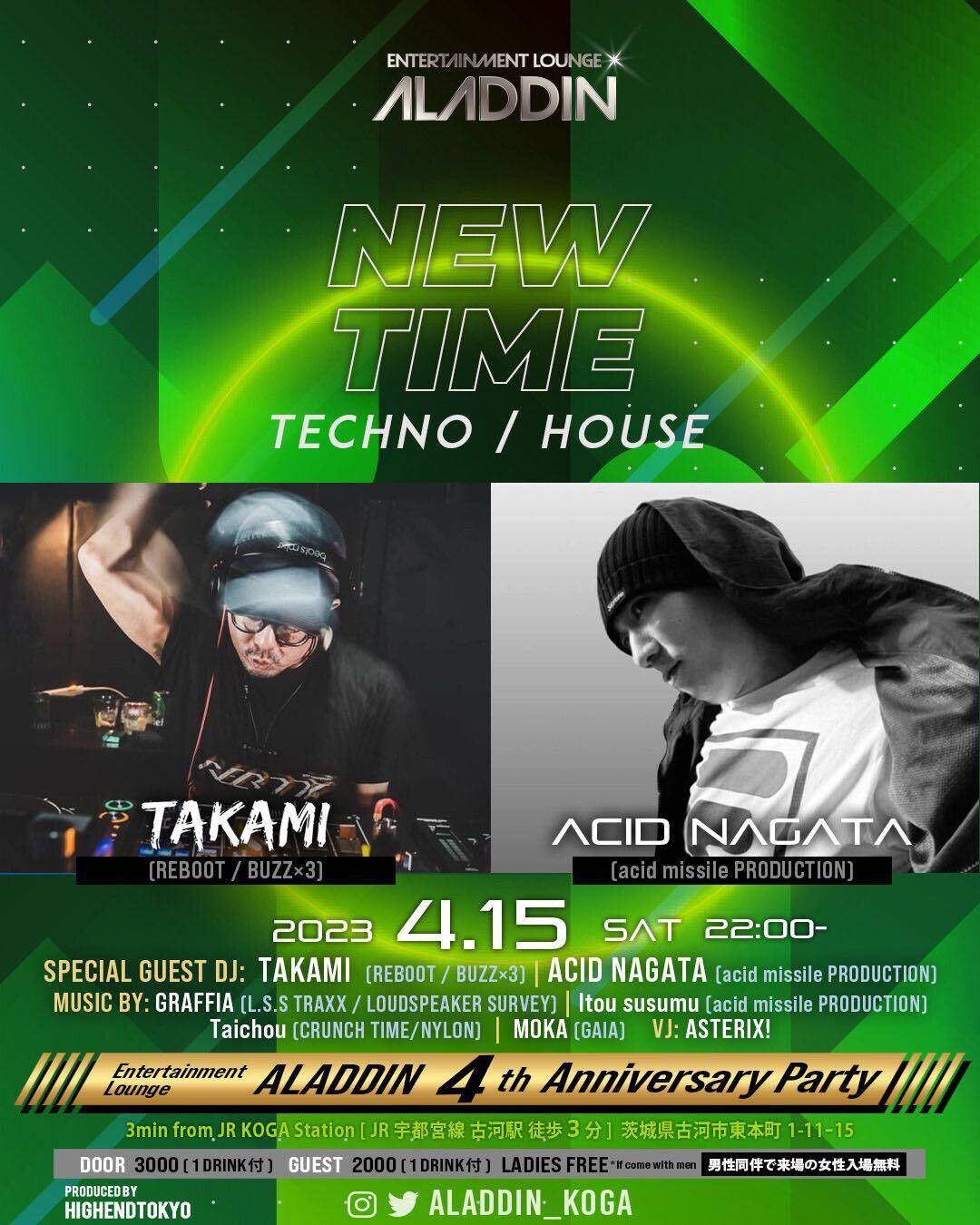 ALADDIN 4.0と題し、WHARFEDALEラインアレイを導入しアップデートされたアラジンが硬派に音で勝負すべくTecho / Houseを中心としたパーティ【NEW TIME】