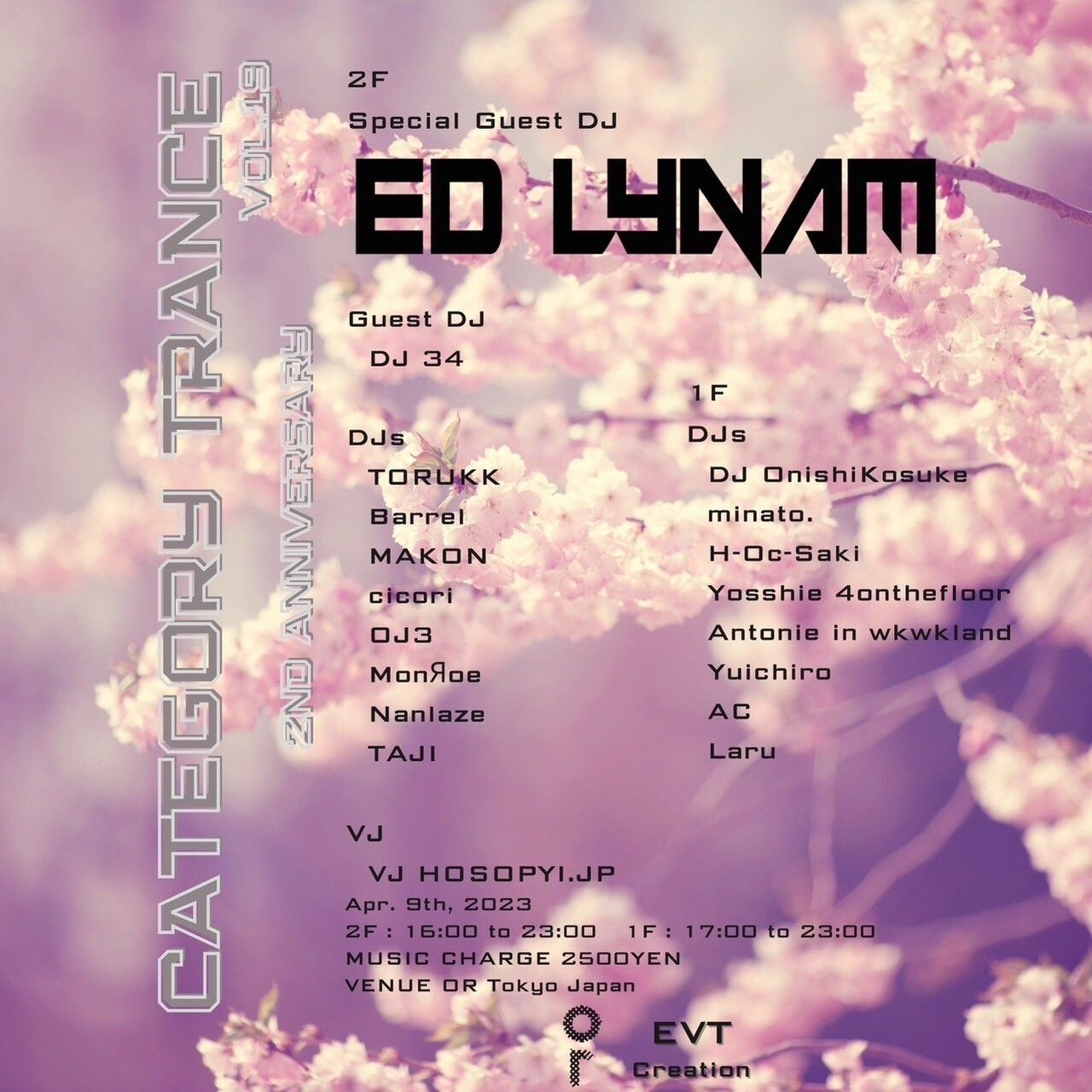 2023年4月で2周年を迎えるCategory Trance、Special Guest DJとして、アイルランドよりEd Lynam、Guest DJ として、DJ 34をお招きして開催します。
