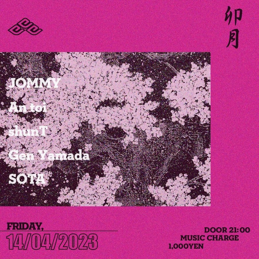 2023.04 14 APR Azumaya -Friday- HOUSE 0 Shares Facebook Twitter google Line DATE: 2023-04-14 FRI OPEN: 21:00 VENUE: PRICE: Music Charge ¥1,000 LINE UP: JOMMY An toi shunT Gen Yamada SOTA