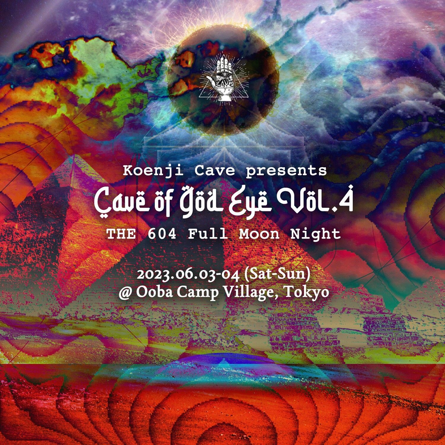 6月3−4日(土、日曜)都心から近い西多摩のキャンプ場、おおばキャンプ村にて2022年台風の影響により中止となった高円寺Caveとmasa兄がプロデュースする野外パーティー [Cave of God Eye Vol.4] リベンジ決定!! アンビエントからテクノ、ゴアトランスからサイケデリックトランス。流れと音によるパーティーのストーリー性、そして一人一人のアーティストをじっくり味わい、向き合う。ㅤ今年は2度ほど野外Raveを開催しますが、その第一弾は小さな規模でじっくりディープな音を聞く場を儲けたいと思っています。どうぞご期待ください!