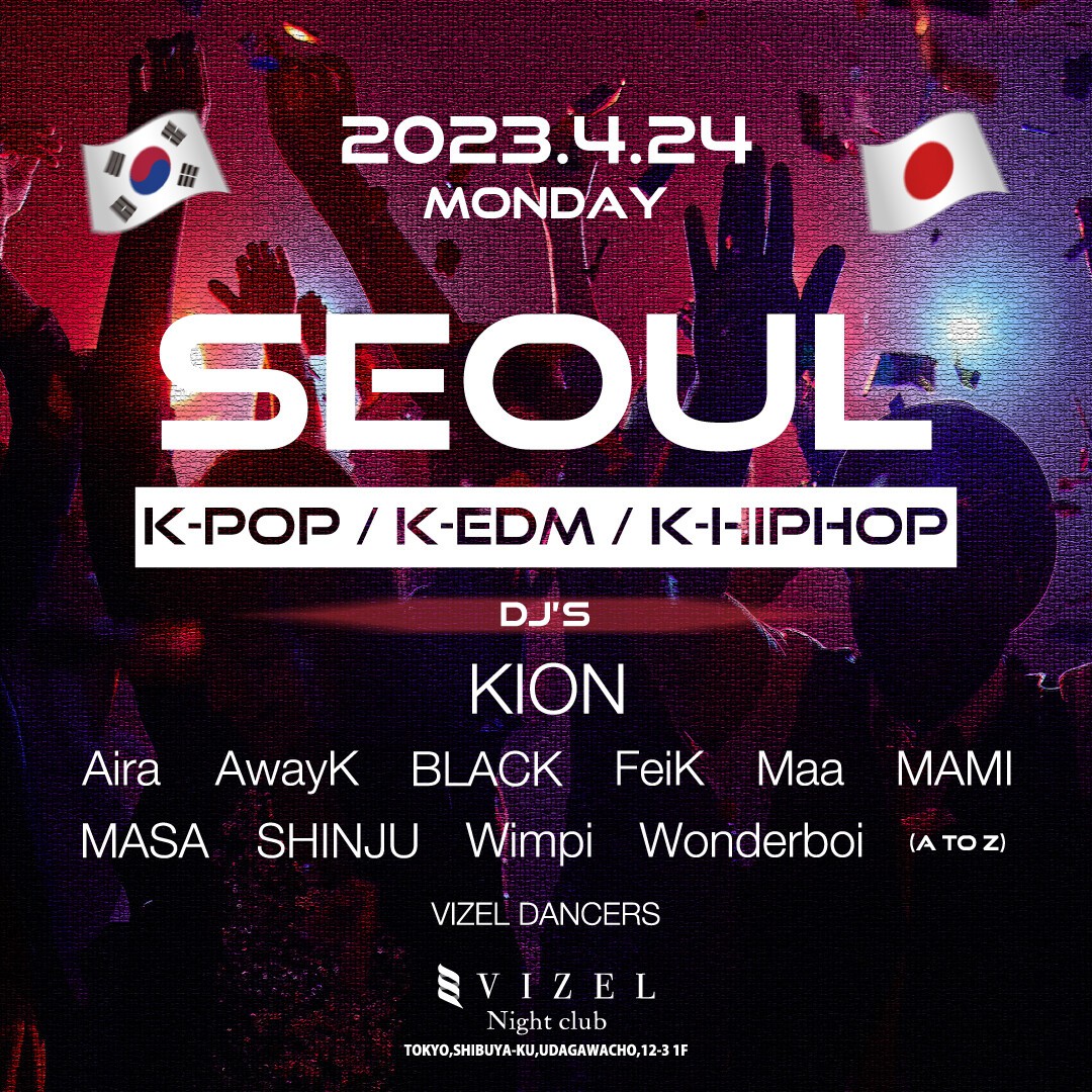 毎週月曜は東京中のK-POP、K-EDM、K-HIPHOP好きが集結する人気パーティSEOUL!!