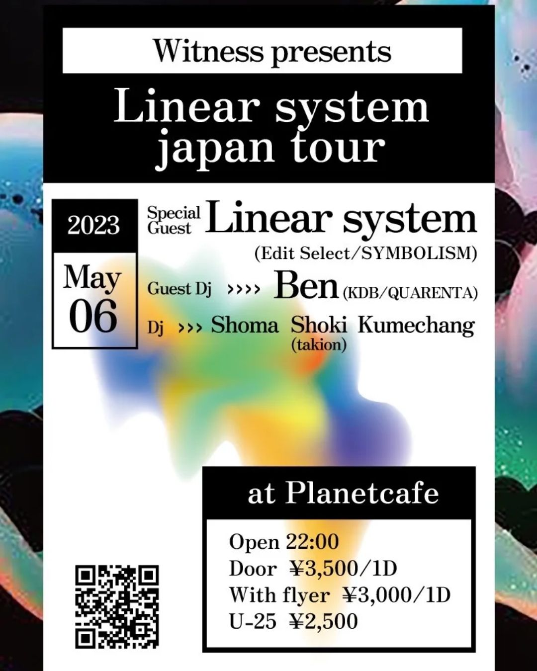 リニアシステムはヒプノティックテクノに焦点を置いていて彼の特徴的な力強いベースライン,Sci-fi ambient,冷ややかなアトモスフィアそしてシャーマニックなリズムなど様々な特徴があります。