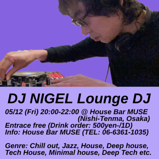 現在は大阪を拠点に、House Bar Muse、東心斎橋CONTORTなどでDJを行なっている。