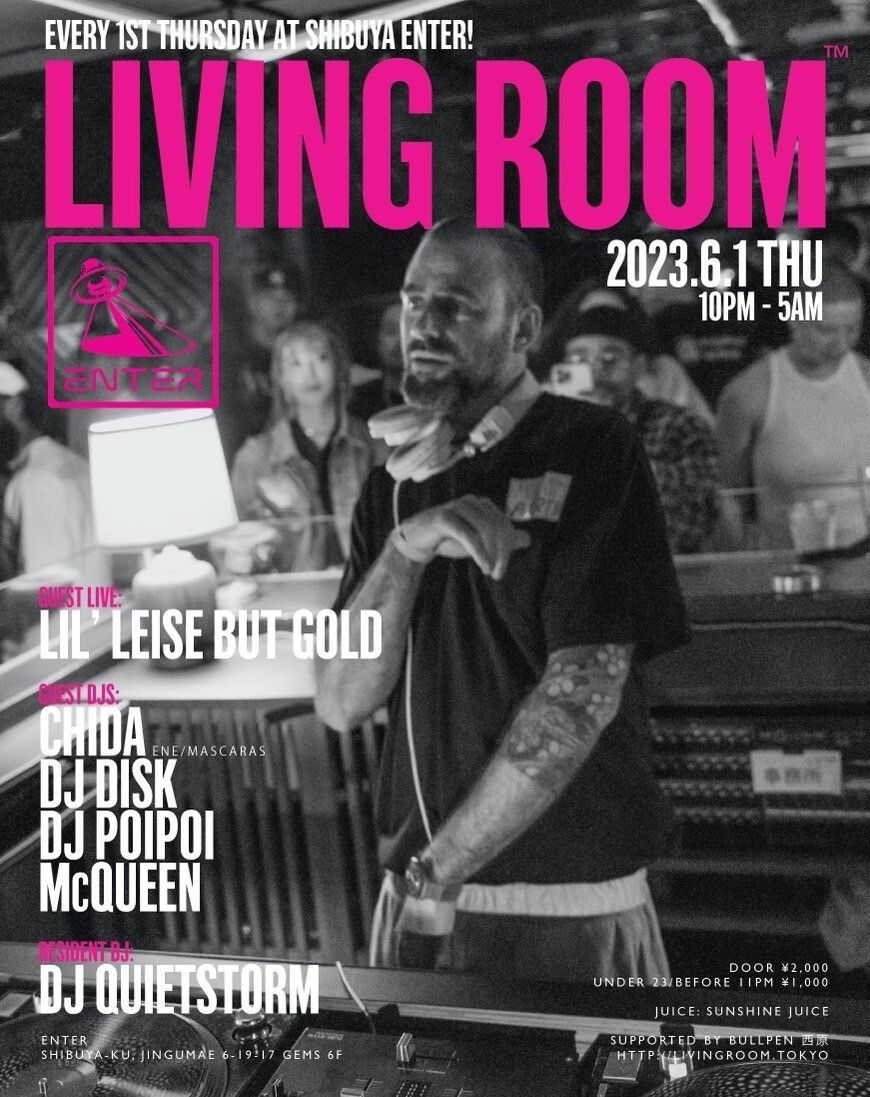今回、場所を渋谷ENTERに移し、キャパシティ的にソファーに座って DJするスタイルはできないが、渋谷ENTERのブース位置(フロアー中央)でのプレイはLIVING ROOM™のコンセプトにマッチする内容となるであろう。