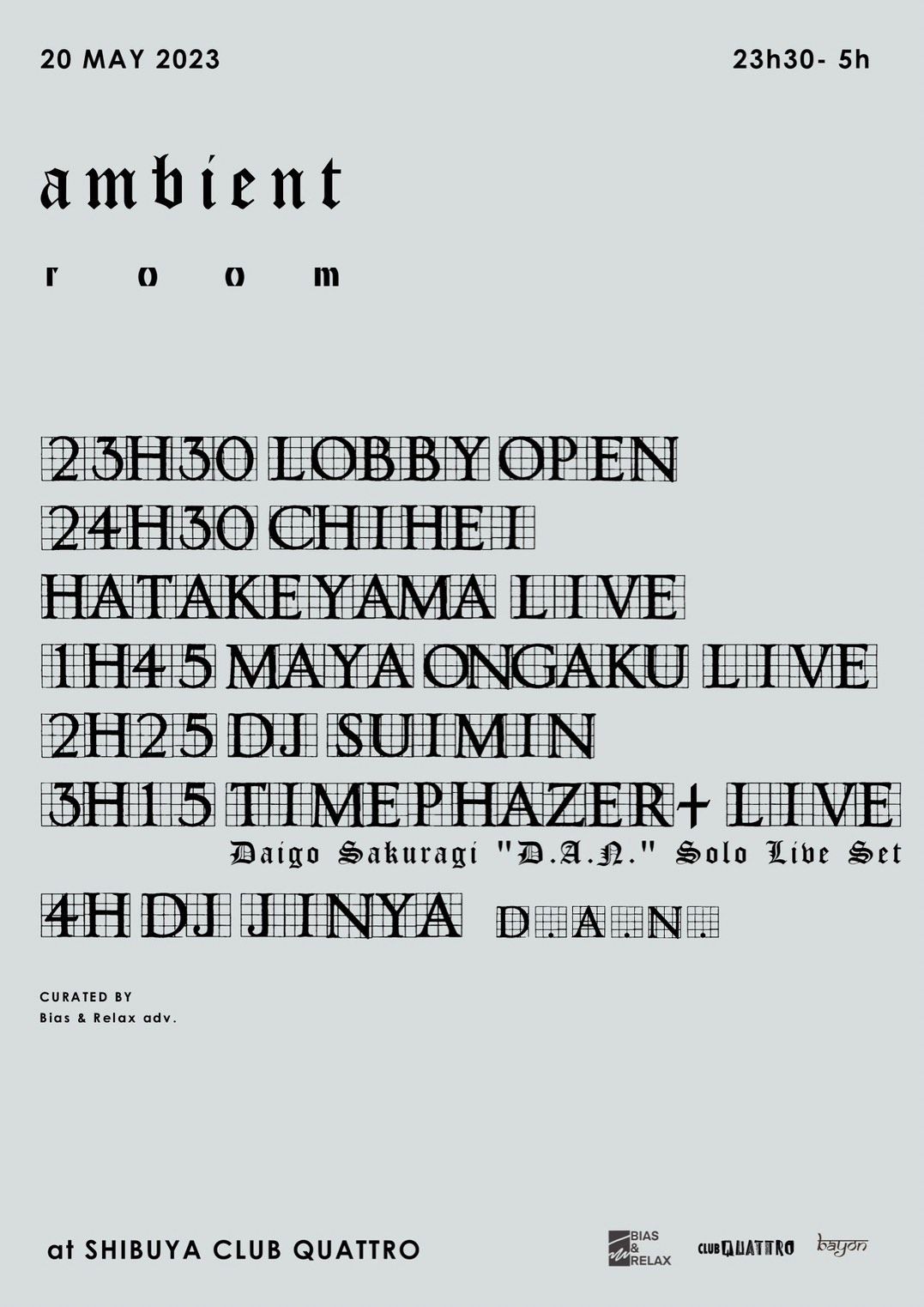 "ambient room"というタイトルの基、彼をラインナップできたことは非常に光栄です。