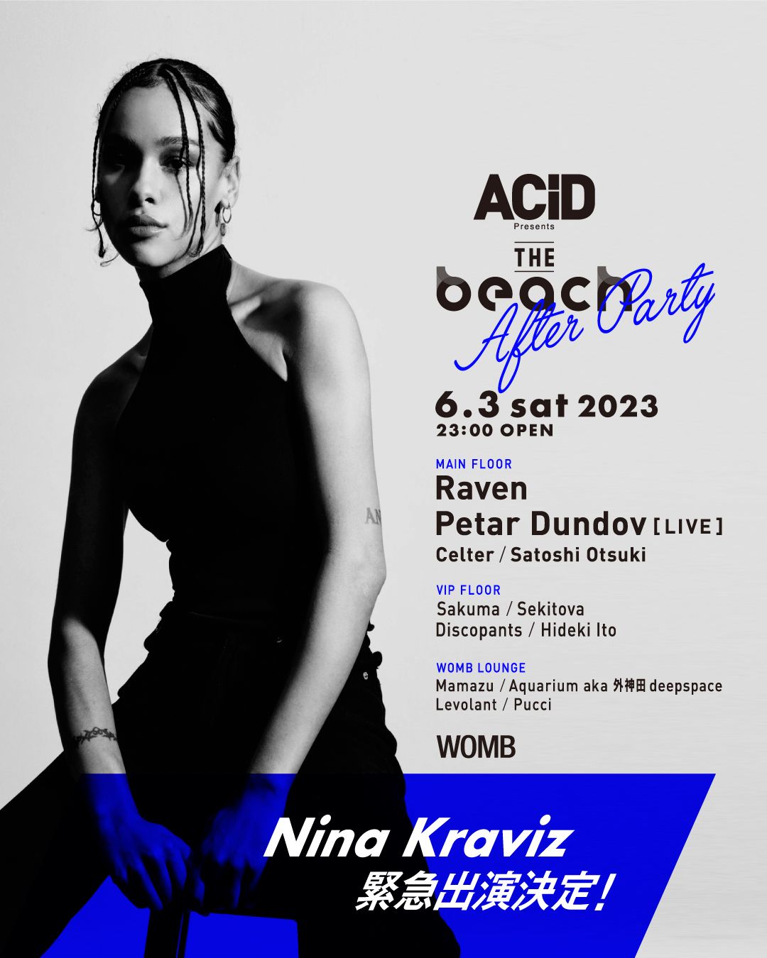 ACiD presents THE BEACH 開催中止を受け、WOMB にて開催の ACiD presents THE BEACH After Party に Nina Kraviz の出演が急遽決定‼️