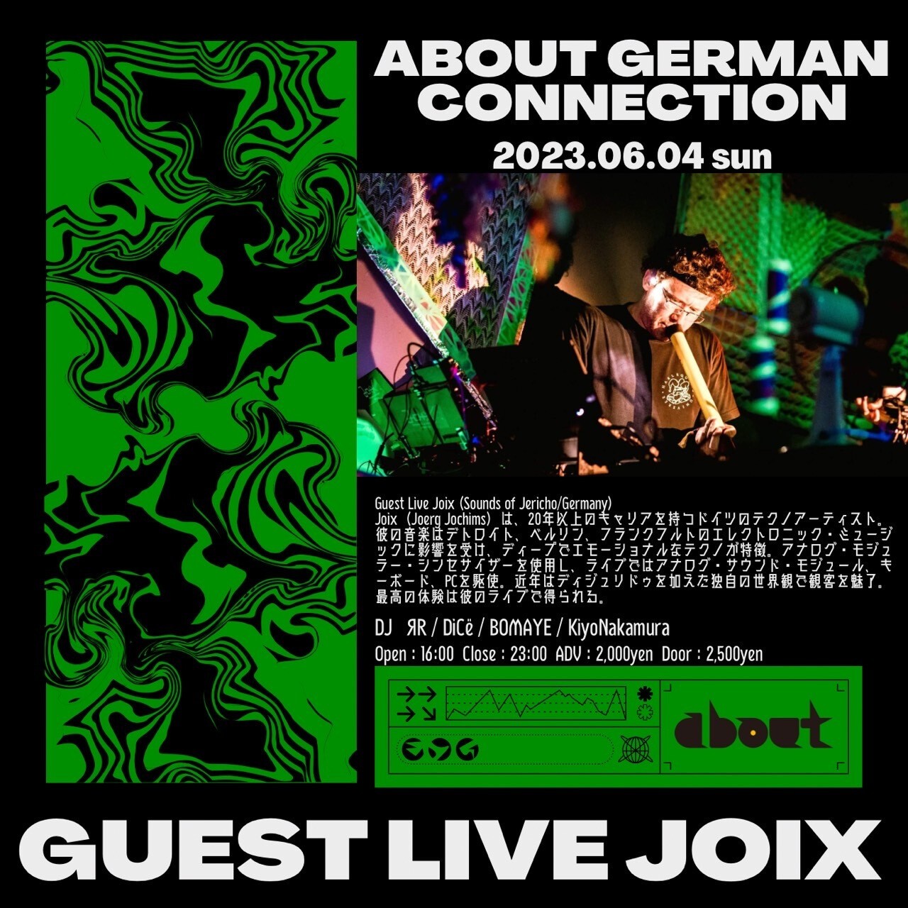 Joix (Joerg Jochims) は、20 年以上のキャリアを持つドイツ のテクノアーティスト。彼の音楽はデトロイト、ベルリン、フランクフルトのエレクトロニック・ミュージックに影響を受け、ディープでエモーショナルなテクノが特徴。アナログ・モ ジュラー・シンセサイザーを使用し、ライブではアナログ・サ ウンド・モジュール、キーボードPCを駆使。 近年はディジュリドゥを加えた独自の世界観で観客を魅了。最高の体験は彼のライブで得られる。