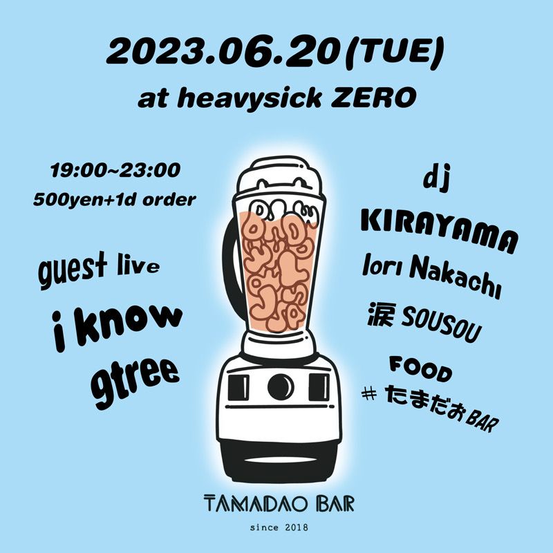 2023.06 20 JUN TAMADAO BAR HIPHOP CROSSOVER 0 Shares Facebook Twitter google Line DATE: 2023-06-20 TUE OPEN: 19:00 VENUE: PRICE: [DOOR]500YEN+1drink oder LINE UP: ■GUEST LIVE i know 9tree ■DJ KIRAYAMA Iori Nakachi 涙SOUSOU ■FOOD #たまだおバー http://www.heavysick.co.jp/zero/