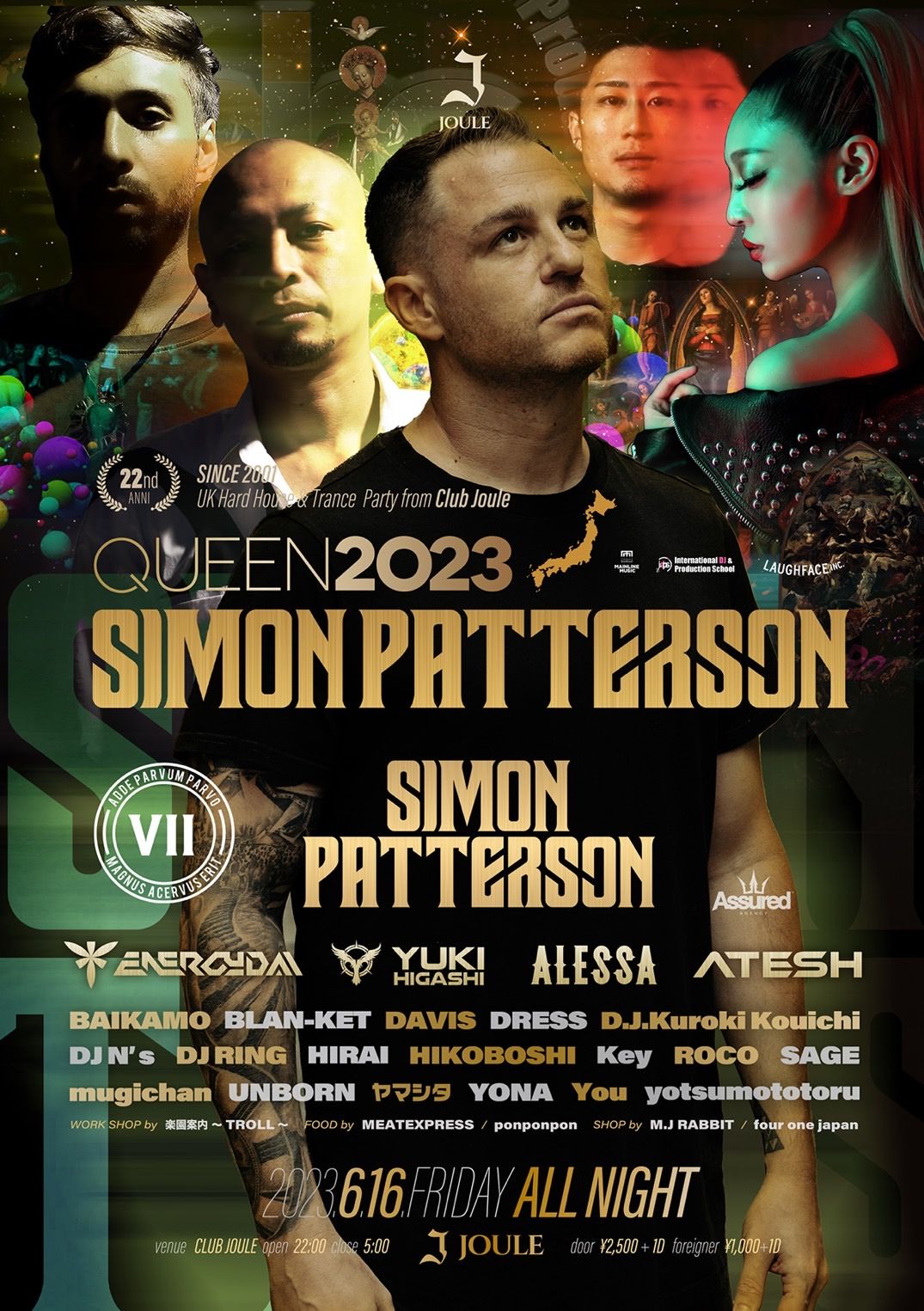 ヘッドライナーに Simon Patterson に、レジデンツ DJ の Energy Dai、Yuki Higashi、ALESSA の3名に加え、世界を代表する Goa Trance レーベル MATSURI DIGITAL 所属アーティスト ATESH が出演。QUEEN 2O23 フロアに、 COPYHOUSE recommend DJ's フロア、IDPS Recordings の3フロア構成で開催。