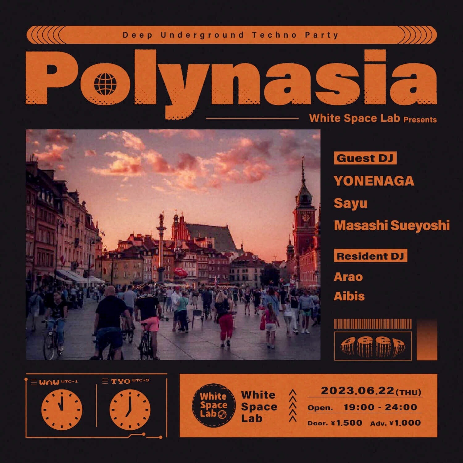 6月のPolynasiaは、Detroit Technoに特化した異彩の輝きを放つParty『R.S.A』を主宰するYONENAGAと、東京のロングランTechno Party『TECHNOSHIP』からSayuと、Industrial,Experiment,Noiseなどを主力とするParty『UNDULATION』を主宰するMasashi Sueyoshiを迎え、夏至のWSLを個性豊かなTechnoで彩る。