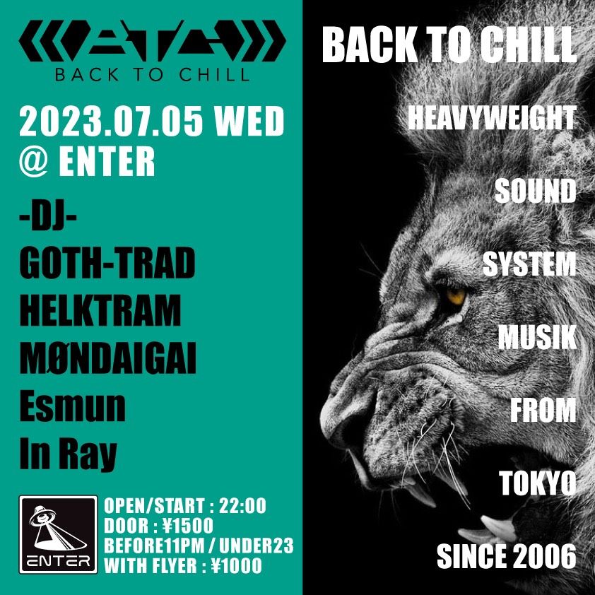 主宰GOTH-TRADがUKのダブステップ・シーンと繋がるきっかけとなった自身のタイトル「Back To Chill」を由来に、2006年に始動した同名のパーティは日本初のレギュラー・ダブステップ・パーティとして話題を呼び、国内のヘッズのみならず、海外のベース・ミュージック・ファンからも注目を集めている。今やダブステップ/ベースミュージック・パーティの最高峰かつ代名詞にもなっている。