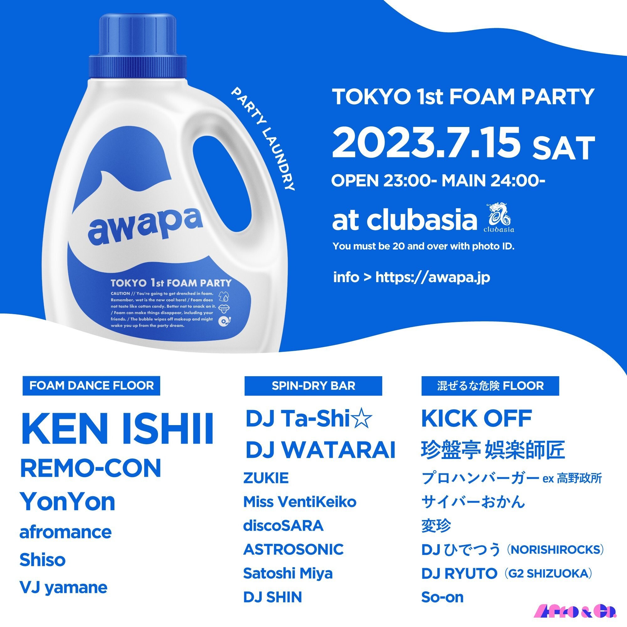 ・メインフロアは泡だらけ及び水浸しになります。濡れても良い服装を着用もしくは持参の上、ご入場ください。またシャワー等のご用意はございません。