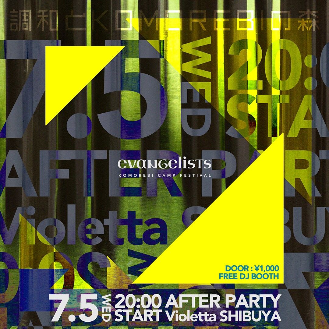 ![[ evangelists KOMOREBI CAMP FESTIVAL 2023 ] AFTER PARTY @ Violetta SHIBUYA](/image/event/299226/1/1/299226.jpeg)