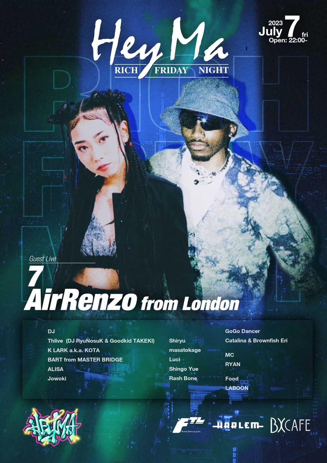DJ: Thrive (DJ RyuNosuK & Goodkid TAKEKI), K LARK a.k.a KOTA, BART from MASTER BRIDGE, ALISA, Jowoki, Shiryu, masatokage, Luci, Shingo Yue, Rash Bone