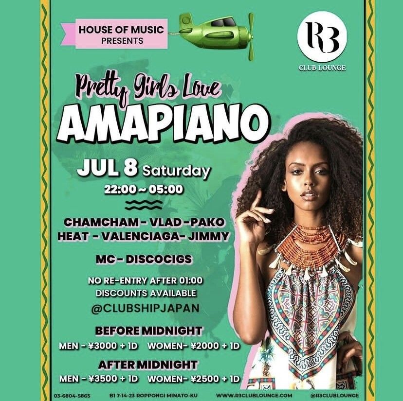 毎回大好評のハウスオブミュージックの代表パーティ、PRETTY GIRLS LOVE AMAPIANOがまたR3にやってきます