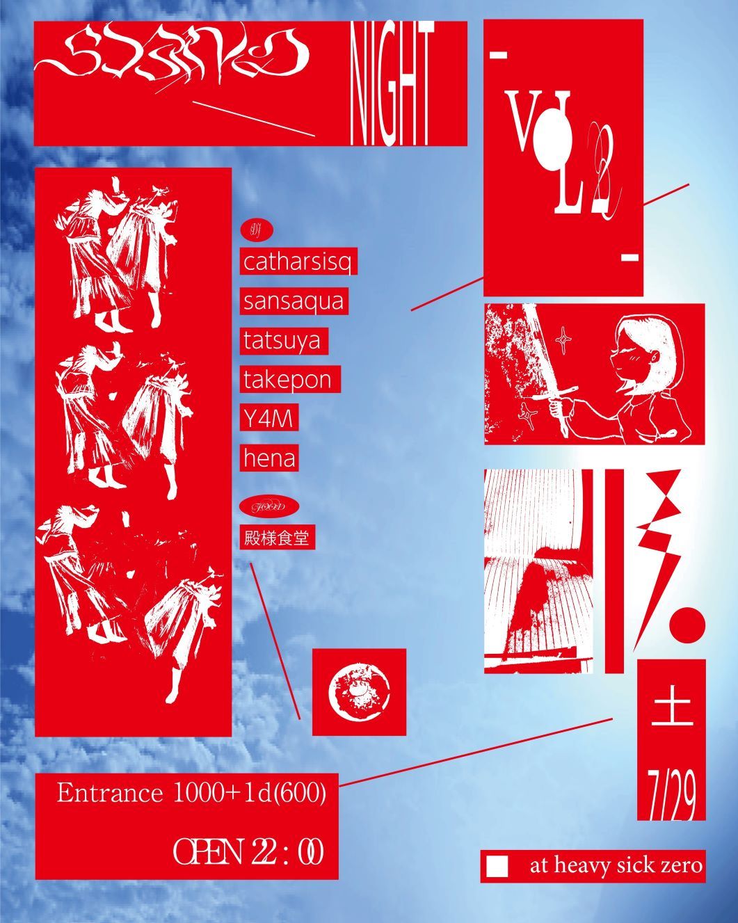 2023.07 29 JUL STRNG NIGHT vol.2 HOUSE TECHNO ELECTRONICA BASS MUSIC 0 Shares Facebook Twitter google Line DATE: 2023-07-29 SAT OPEN: 22:00 VENUE: PRICE: [DOOR]1,000YEN+1D LINE UP: ■DJ catharsisq hena sansaqua Takepon tatsuya Y4M (A to Z) FOOD 殿様食堂 http://www.heavysick.co.jp/zero/