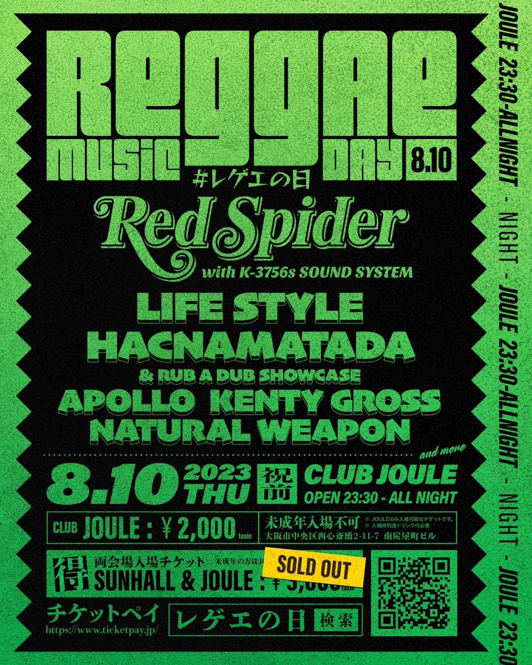 初のレゲエの日となる2023年8月10日はRED SPIDERがアメ村をJACK❗️
