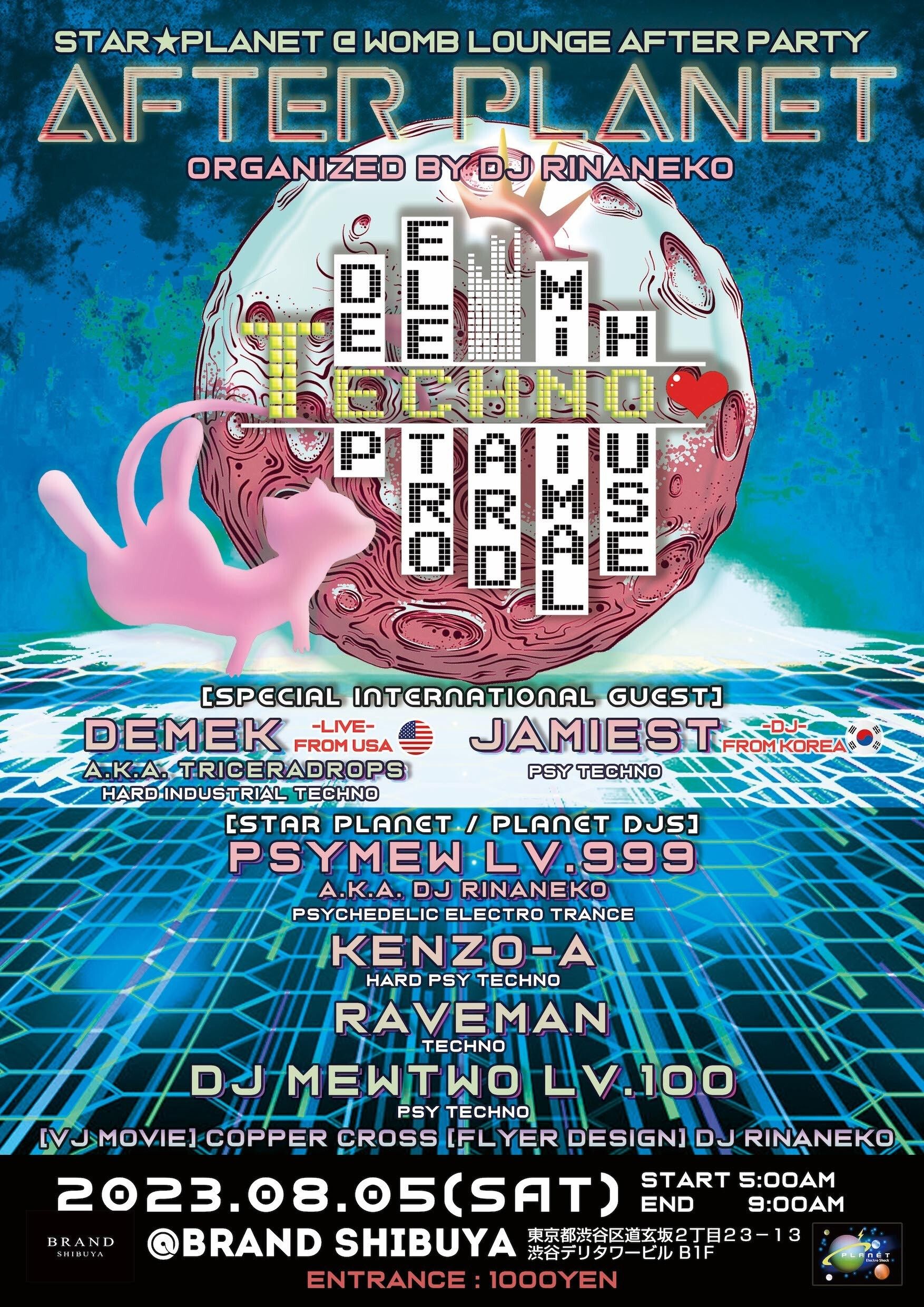 STAR☆PLANET本編に出演するインターナショナルゲストの二人も、「AFTER PLANET」ではJamiestはPsyTech、Whole ThingsのJjは、DEMEKという名義でHard Industrial TechnoのLiveを披露。