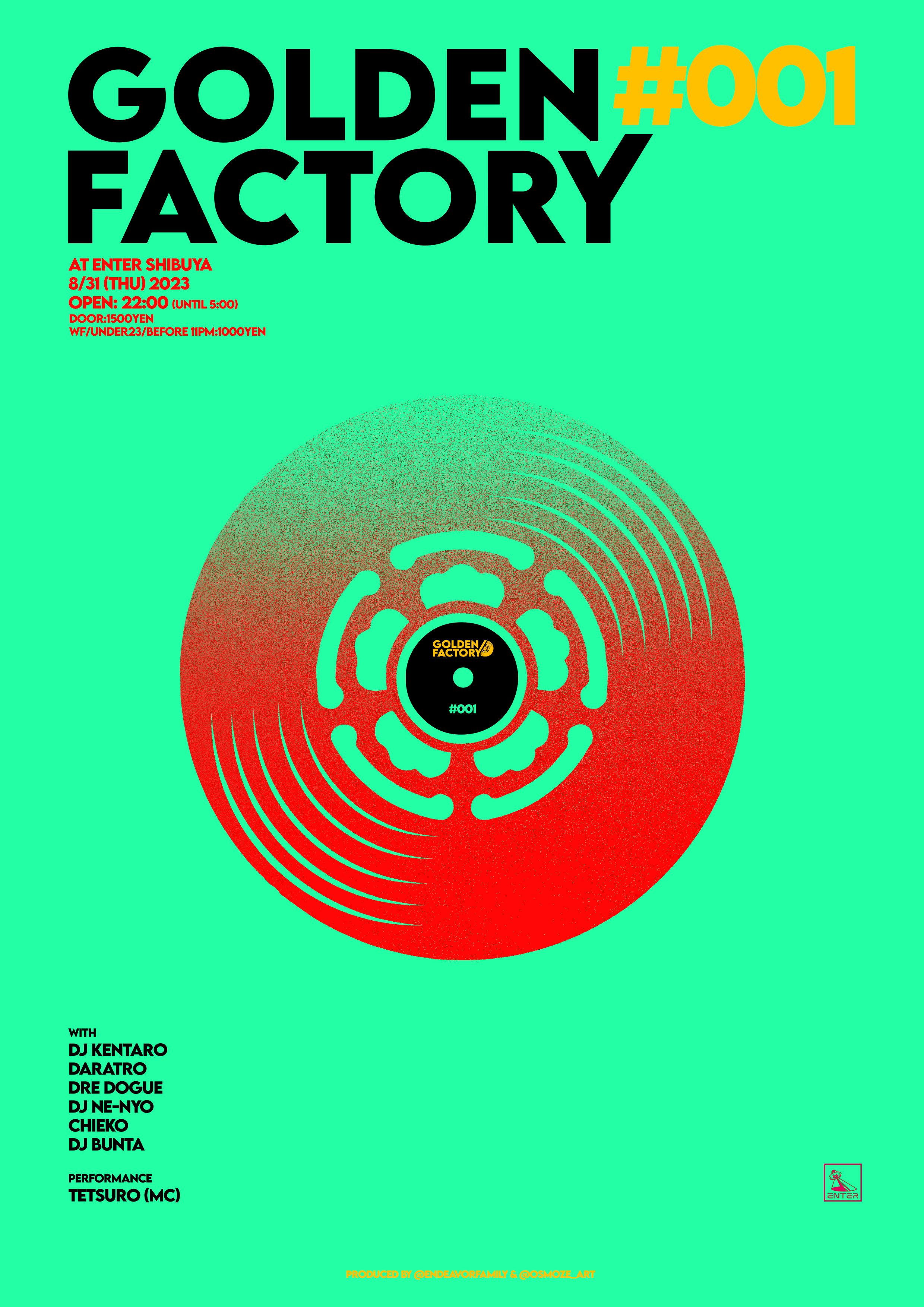 新たな「GOLDEN FACTORY」は、ENTER SHIBUYAにて、DJのみではなく、音楽愛好家、アート、カルチャーの集合体をテーマに、年齢国籍性別に関わらず、さまざまなアーティストと共にさまざまな内容でお届けする。