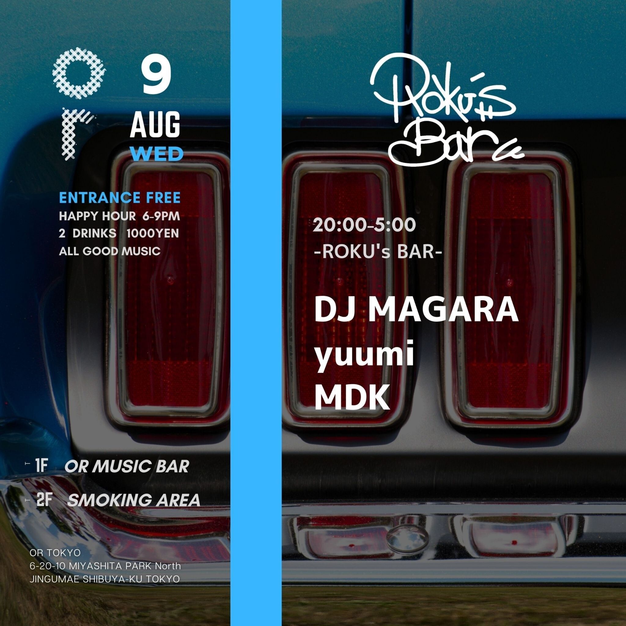 2023.08 09 AUG OR WEDNESDAY -ROKU’S BAR - ALLMIX 0 Shares Facebook Twitter google Line DATE: 2023-08-09 WED OPEN: 20:00 VENUE: PRICE: FREE LINE UP: DJ MAGARA/yuumi/MDK DJ MAGARA/yuumi/MDK