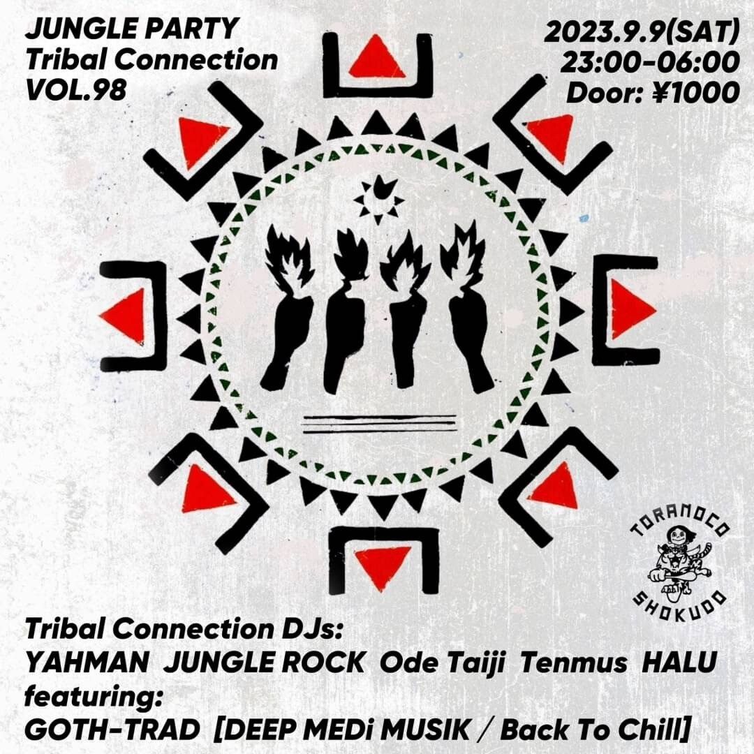 Reggae/Dubの力強さ、脈々と現代に繋がっているSoundsystem Cultureの重低音、Raggaの激熱咆哮と存在感、Jazz/Soul/Funk/Hiphopなどの刻みに即興感、HouseやTechnoの反復の快楽、Raveの天井知らずの高揚感、心躍る各地のメロディにリズム、生~電子楽器など、様々な音の要素を吸収しそれらを疾走感あふれるブレイクビーツと重低音に乗せて一気に放ち音の密林へ誘う血湧き肉躍る雑食ダンスミュージック=JUNGLEを中心に、黄金のBass CultureとRave Cultureを結びつけ、熱い音を楽しめるパーティー、それがTribal Connection。トラコネことTribal Connectionは2009年に始動、現在渋谷の虎子食堂にて奇数月第2土曜に開催中。