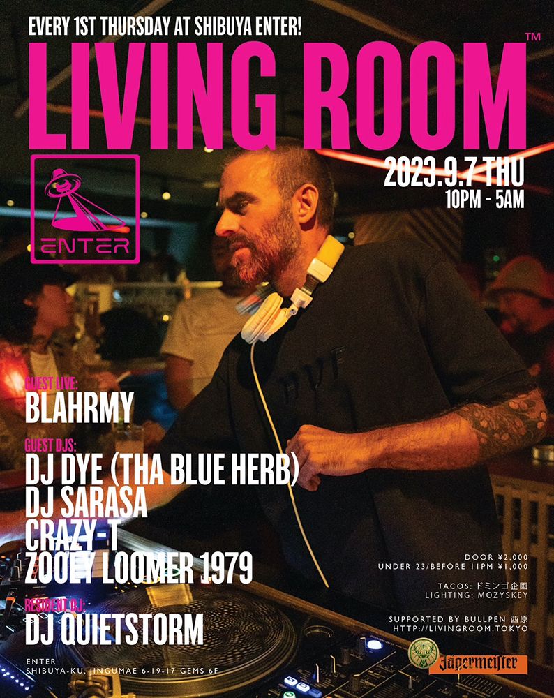 ヒップホップ/ハウス/ジャズに限らず、様々な手法で独自の音楽を提示し続けた真の音楽家であるDJ Quietstorm。彼だからこそ為し得ることのできる特別な一夜にはこれまで、平日のパーティにも関わらず様々なジャンルのトップDJ/アーティストだけでなく、これからの音楽を担う若いアーティストを招き、音楽を愛する多くの人々を魅了してきた。 今回、場所を渋谷ENTERに移し、キャパシティ的にソファーに座って DJするスタイルはできないが、渋谷ENTERのブース位置(フロアー中央)でのプレイはLIVING ROOMのコンセプトにマッチする内容となるであろう。 毎月第1木曜日に開催されるLIVING ROOMのNew Standard Startedを体感しよう。