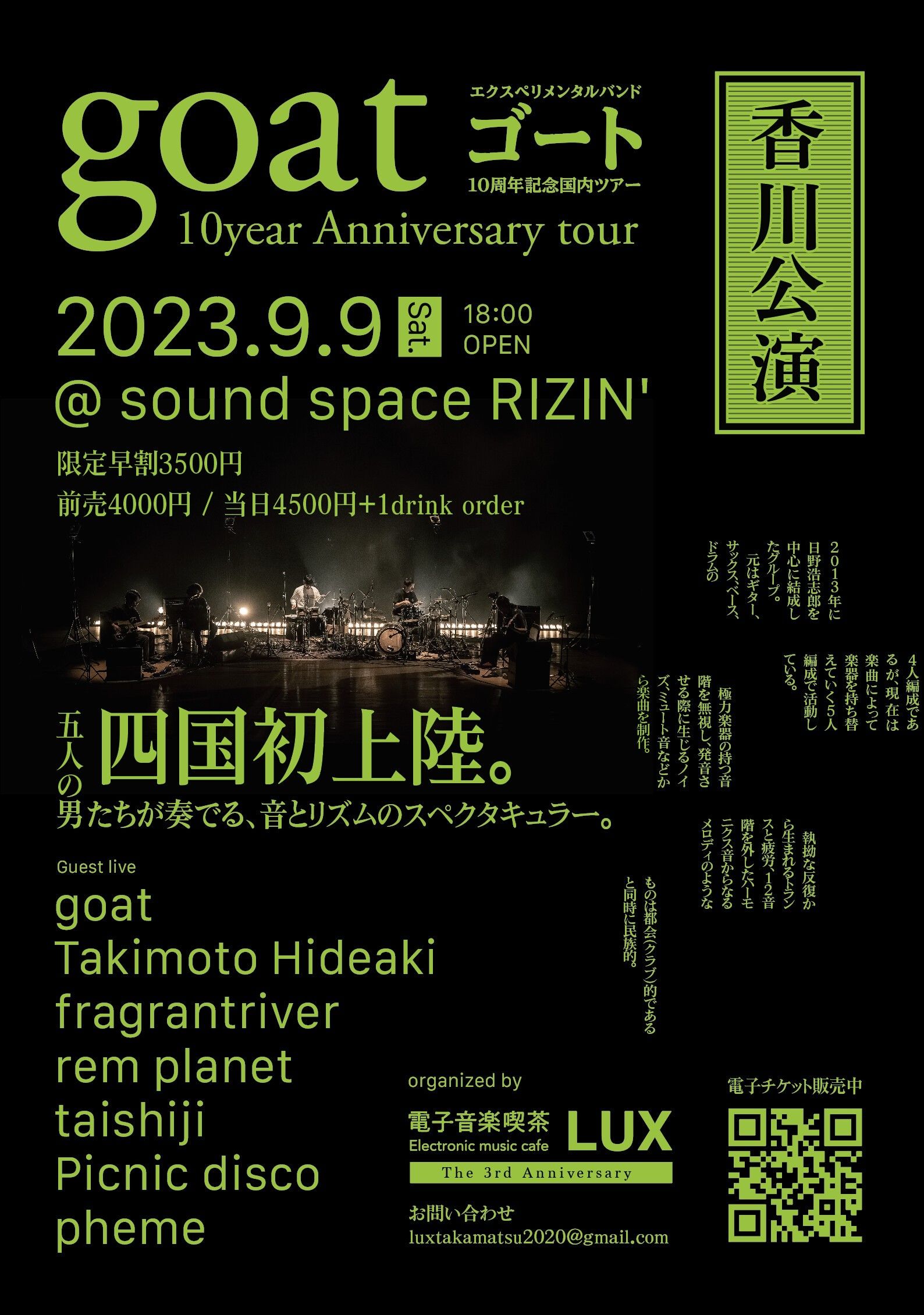 - 限定早割3500円/前売4000円/当日4500円+1drink order