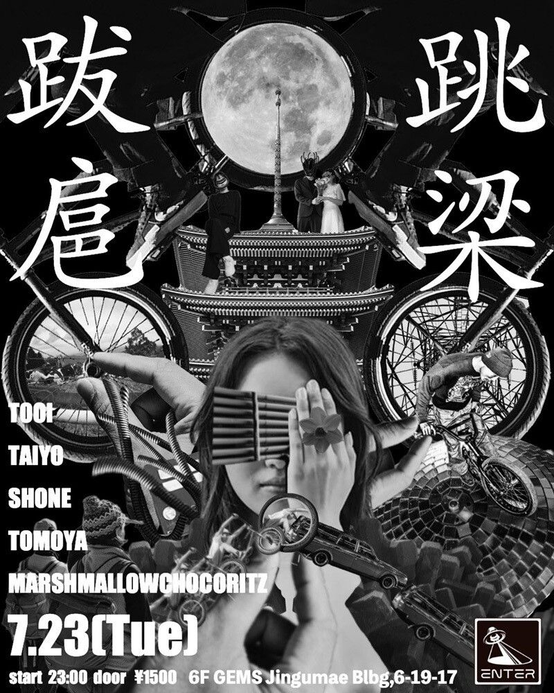 兵庫県出身21歳のフォトグラファーTaiyo Tanidaと、広島県出身20歳のコラージュアーティストTooi Omoriの2人からなる初個展、跳梁跋扈を締めくくるイベントとして跳梁跋扈アフターパーティを開催。
