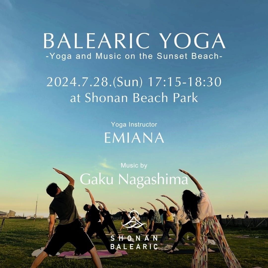 2024年7月28日(日)、江の島と海、そして富士山が見渡せる絶景ポイント「湘南海岸公園 ヤシと芝生広場」で、昨年大好評を博したサンセットビーチヨガのクラス「BALEARIC YOGA」が行われます。
