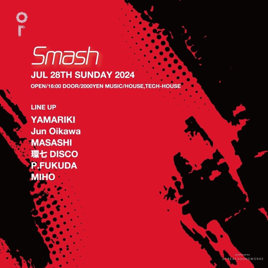 ”Smash”は混沌としたPartyがありふれている日曜日に新たな風を吹き込むべくミュージックジャーニーの終着点として日曜日の午後にたどり着いて欲しい、そんな願いを込めたパーティーである