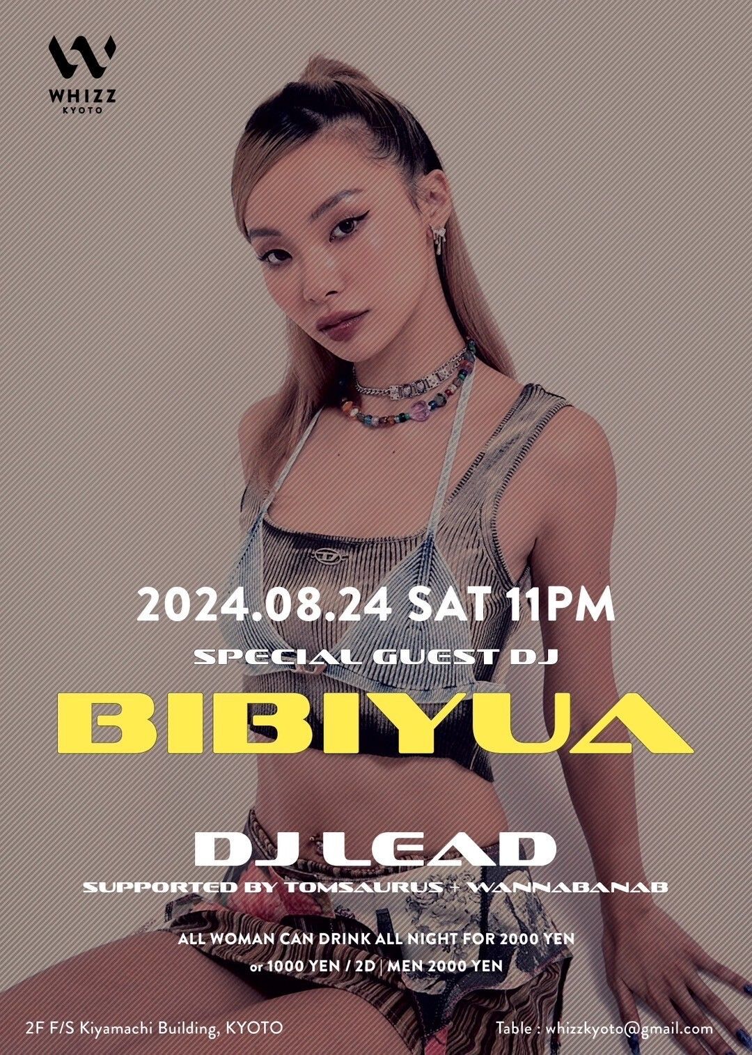 - <ENTRANCE FEE> WOMEN ALL YOU CAN DRINK 2,000YEN or 1,000YEN/2D, MEN 2,000YEN/1D