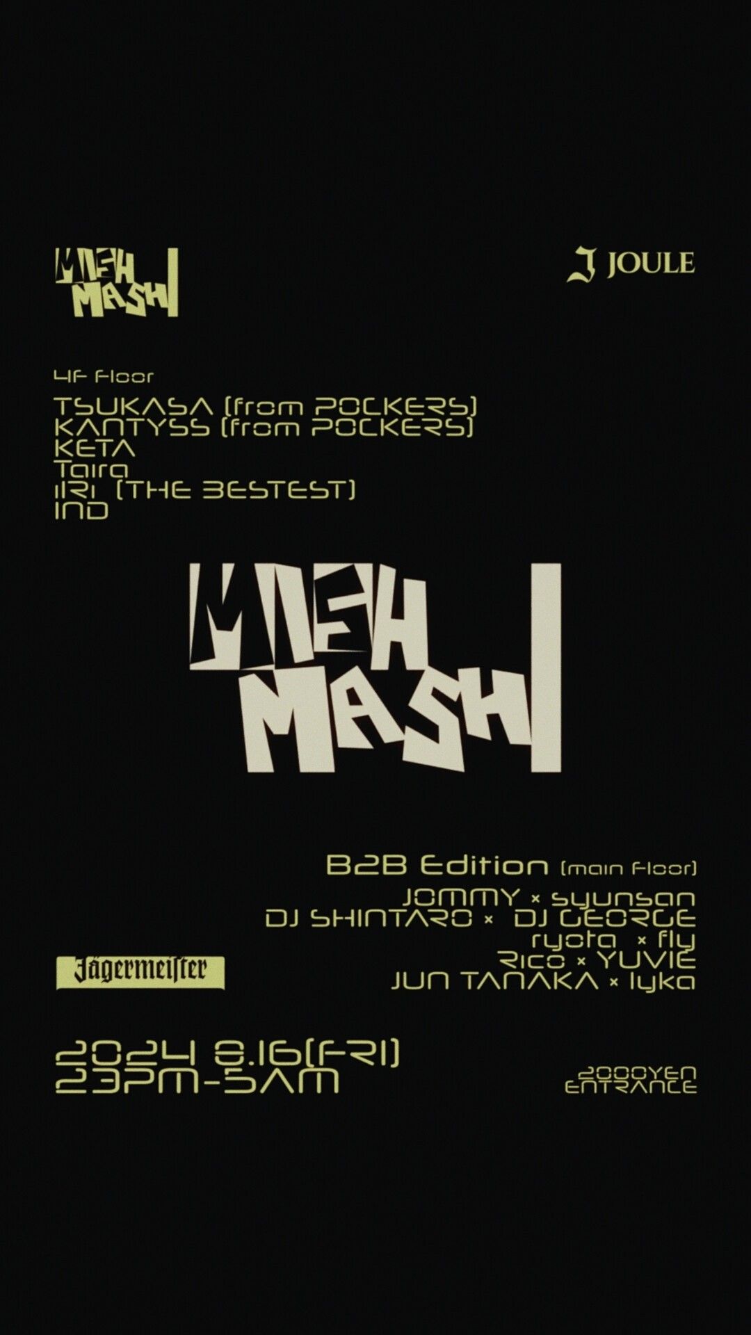 - Door : ¥2,000- U23:¥2000-2D(1drink +1 Jäger)