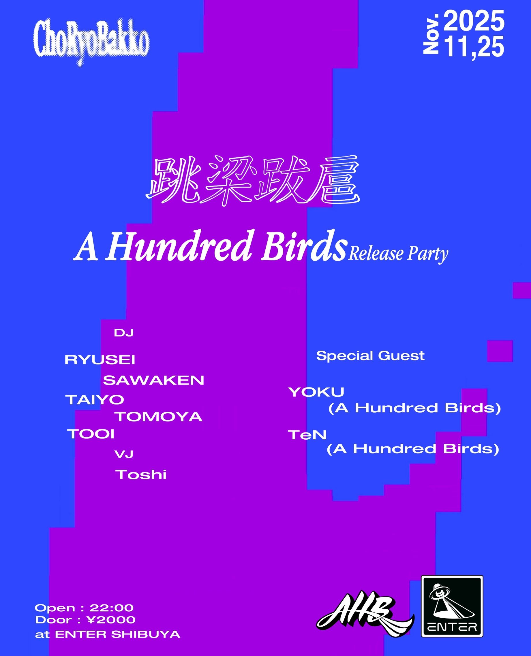 A Hundred Birds(ア・ハンドレッド・バーズ)は、1996年にDJ YOKUが結成した日本を代表するダンスミュージック・オーケストラ。2000年にNYの〈Wave Music〉から「Batonga」で海外デビューし、続くリリースで国際的評価を確立。2005年にはメジャーファーストアルバム「Fly From The Tree」を発表。以後、アルバム4枚・シングル4枚をリリース。2011年に自主レーベル 〈100records〉を設立し、毎年クリスマスに12インチカバーシリーズを発表。これらをまとめたアルバム「DISCOvery」が2016年にイギリスの名門〈BBE〉から世界発売され、以降も精力的にオリジナル楽曲を発表している。